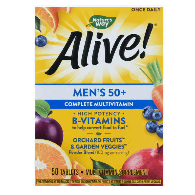 Alive! Complete Multivitamin Men's Tablets deliver essential vitamins, minerals, and antioxidants in an easy-to-take tablet! Formulated with over 90 naturally sourced ingredients, these tablets provide nutritional support and are formulated specifically for men’s needs. Get the nutritional support you need in just one daily tablet.