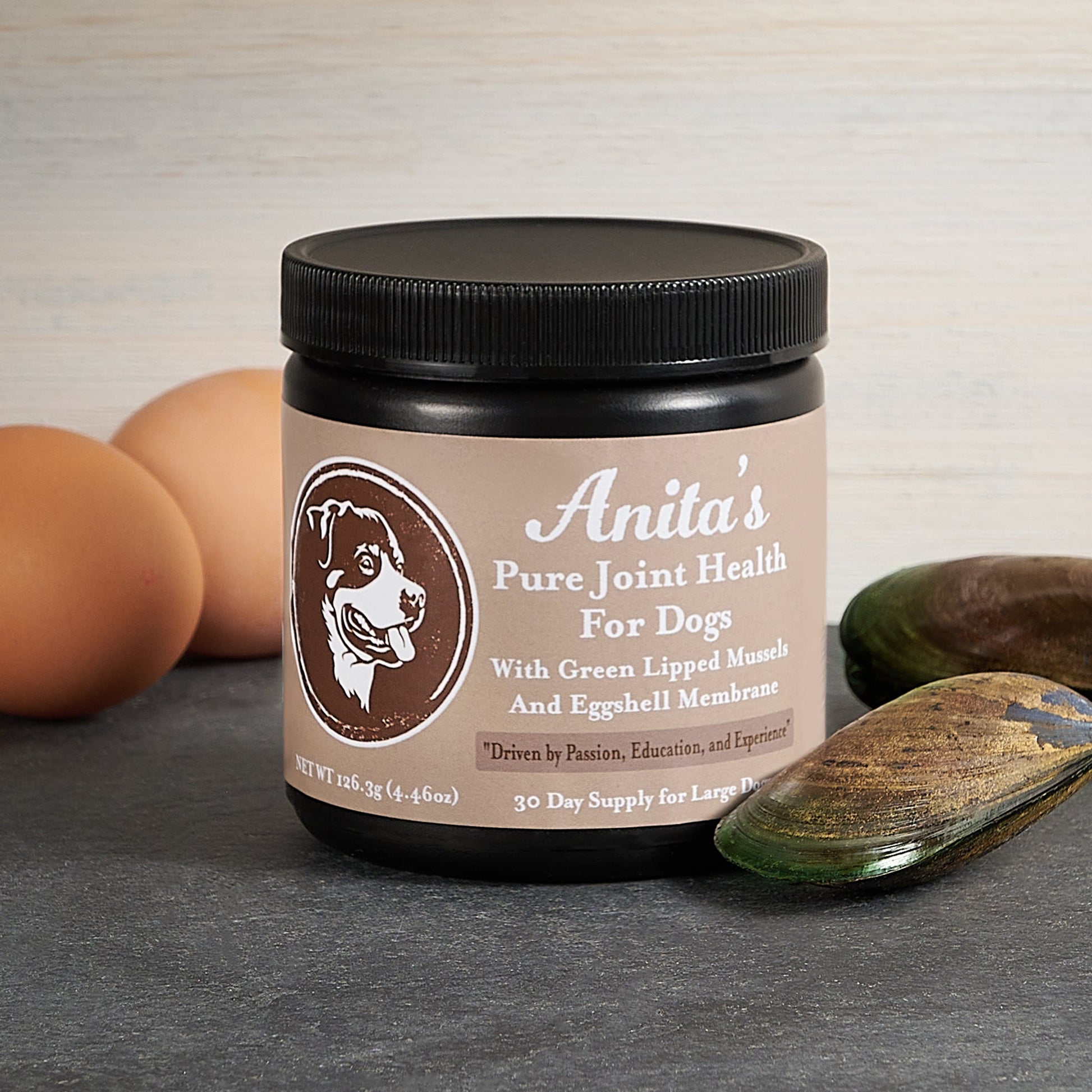 Most dogs will experience issues with their hips and joints at some point in their lifetime due to age or genetic predisposition. Anita’s Pure Joint Health For Dogs helps reduce inflammation, aids in recovery, and prevents injury with powerful natural ingredients like green lipped mussel powder, eggshell membrane, and glycosaminoglycans with no additional fillers or preservatives.