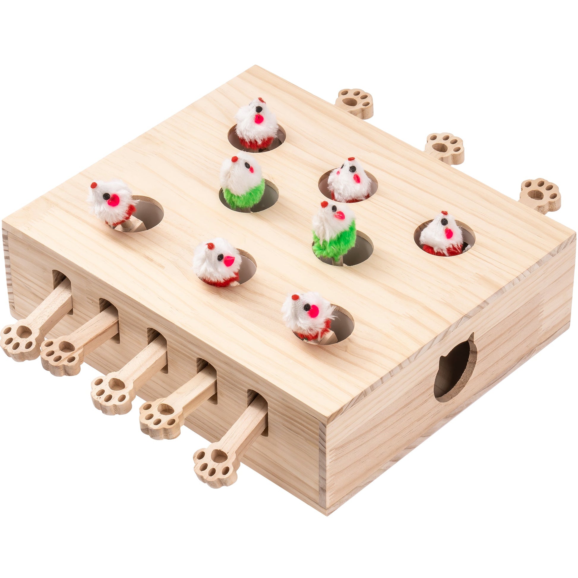 Cat Toy Interactive Whack-a-mole Solid Natural Wood Portable