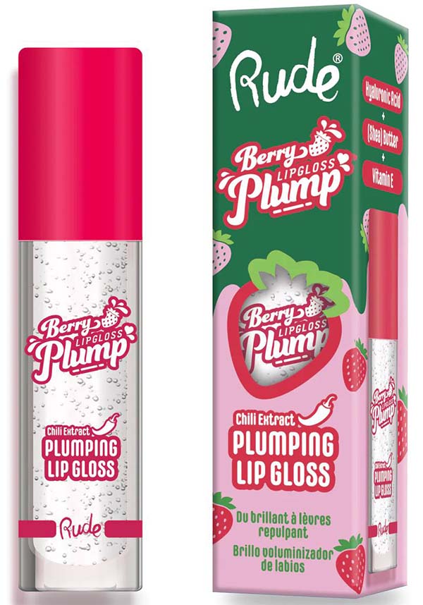 Rude Cosmetics' bestselling Crystal Clear Lip gloss now comes in a juicy plumping formula! Hyaluronic acid, shea butter, and vitamin E keep your lips soft and supple while chilli extract immediately plumps your pout!