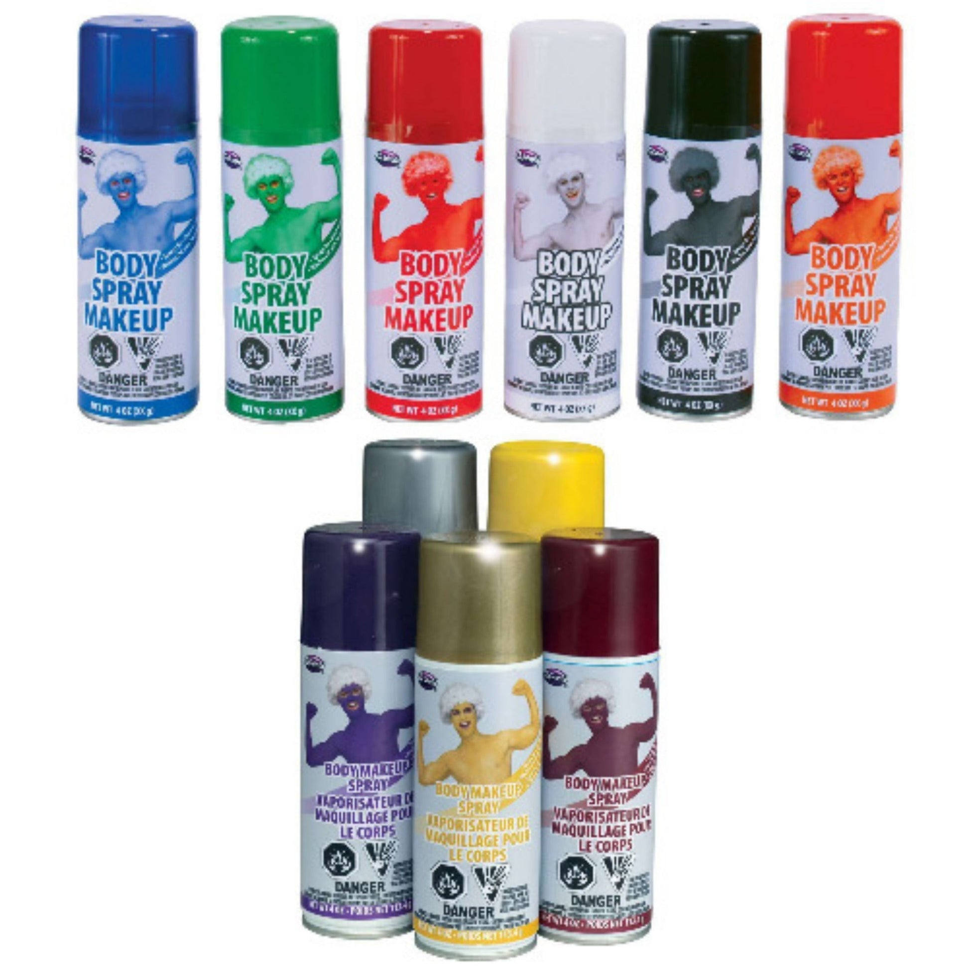 One of the great things about these Body Makeup Sprays is that they are available in a staggering array of colors. You can get it in Red, Green, Orange, Blue, Black, and White as well as a few metallic shades. You get a can that holds four fluid ounces of aerosolized cosmetic makeup.