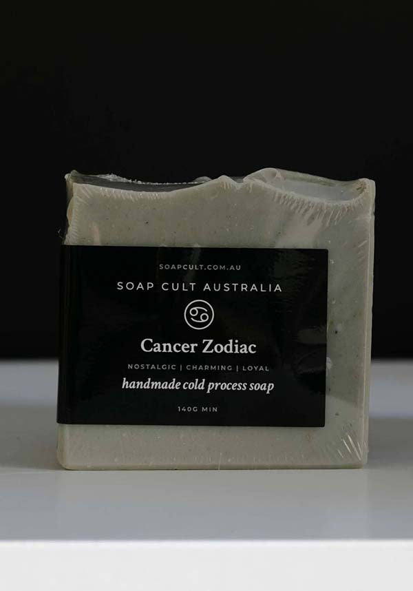 Each soap is hand stamped with the symbol for Cancer and the product label features some key traits of Cancerians.