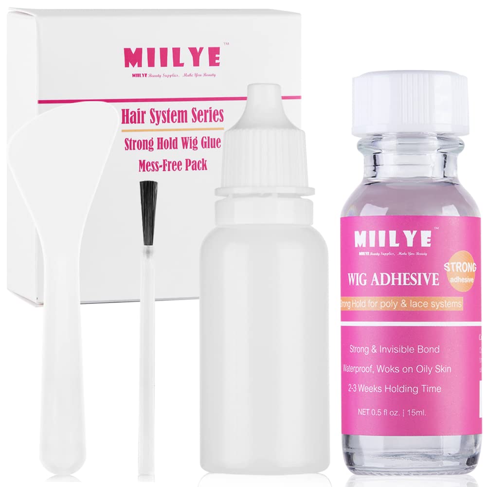 - MIILYE lace wig glue is kind of hypoallergenic and skin-friendly body glue, please test on small area before use on sensitive skin; our strong hold lace front wig and toupee glues work great on both women and men with oily skin and scalp and will NOT hurt the natural hair, you can be confident and comfortable with this hair bonding glue;